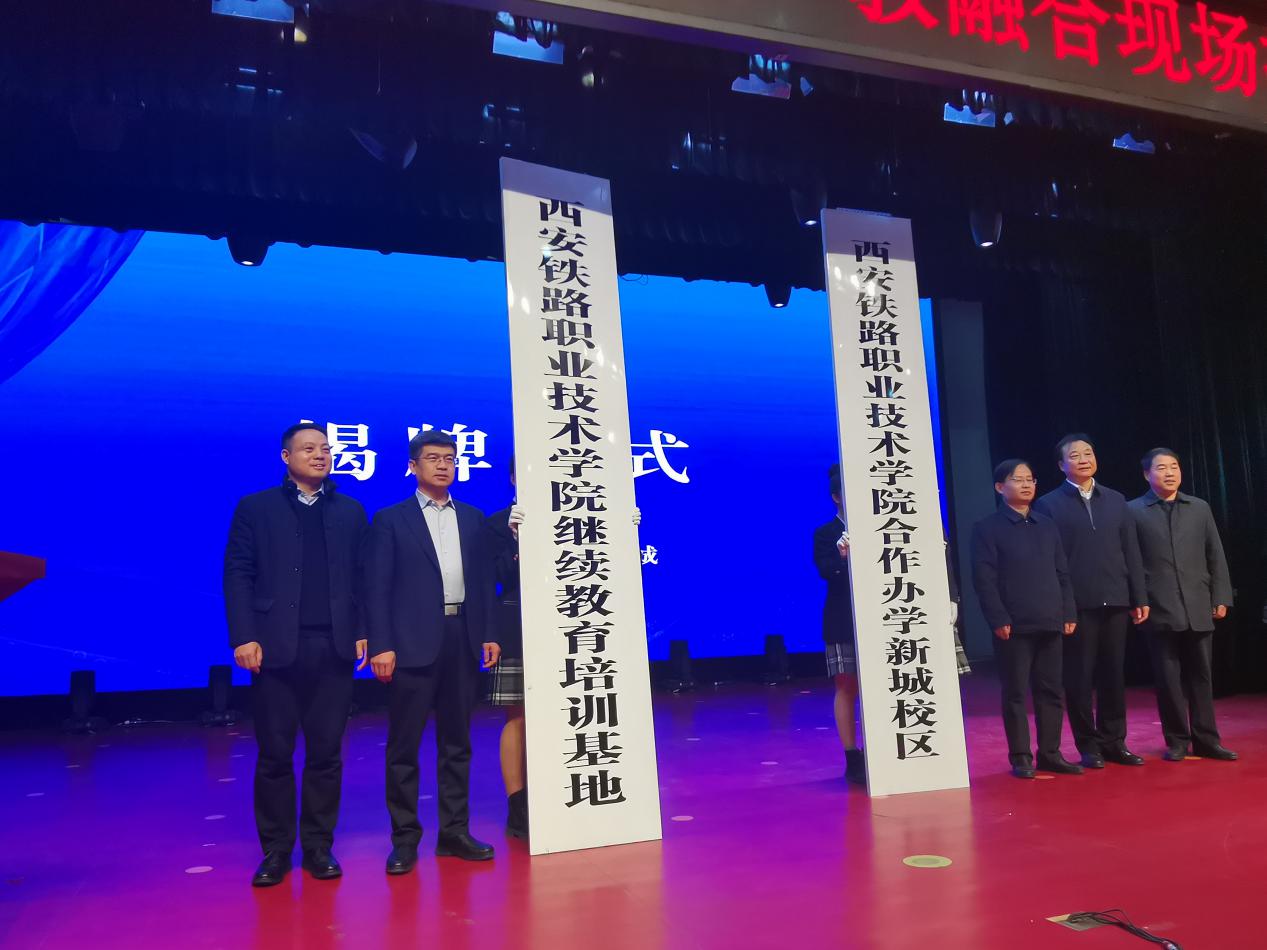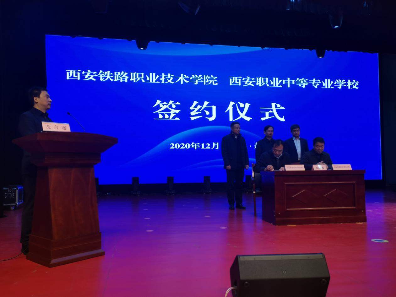 在推进会上,举行了隆重的签约和揭牌仪式,院长赵春平为鸭脖合作办学新城校区、继续教育培训基地进行了揭牌,副院长安学武代表学院与西安职业中等专业学校签订了战略合作协议。