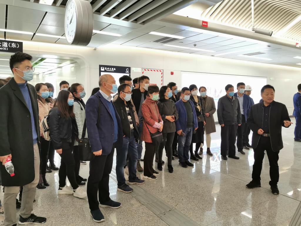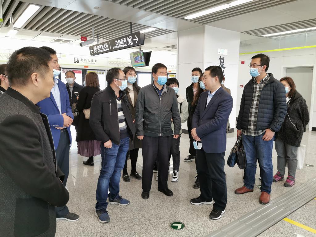 随后,从复兴大道南站乘坐列车前往创新港站,沿途观摩车站建设及线路试运营情况,积极同地铁工作人员咨询、交流。