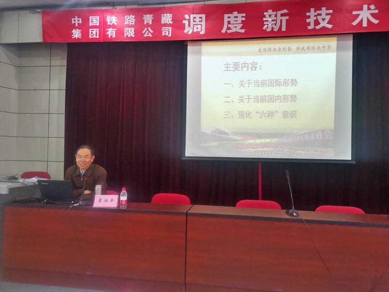 4月11日,学院党委副书记邓耀斌深入继续教育学院青藏公司调度新技术培训班教学一线,在自强校区综合管理处主任杨稳利、继教院副院长许晓华的陪同下,听了一堂由全军知名专家、原解放军边防学院安全与文化研究中心主任、少将,现任陆军海边防学院特聘专家李业平教授做的题为“客观辩证看形势,强我国防兴中华”的国防知识专题讲座。