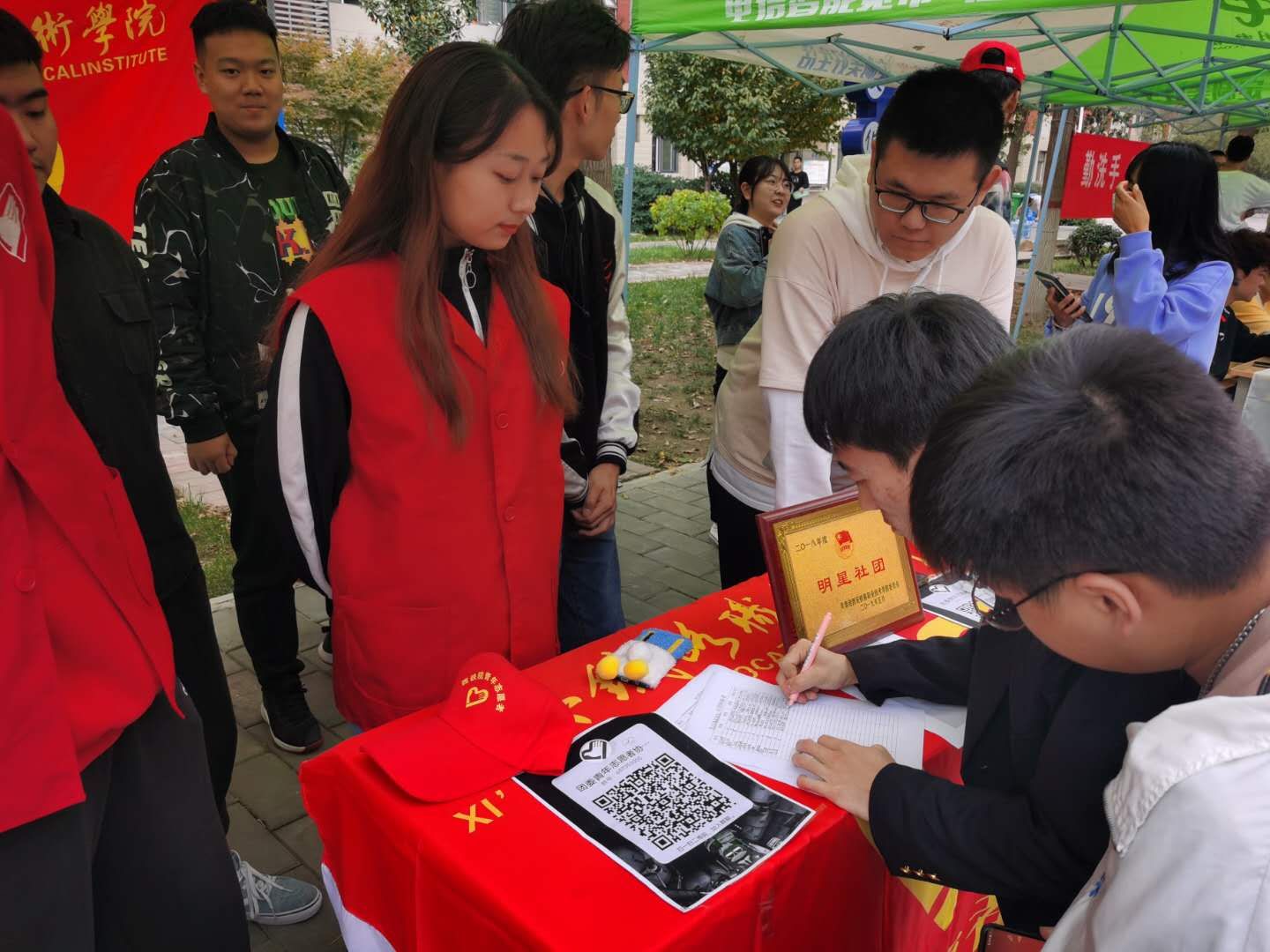 本次社团文化艺术节开幕式采取各社团风采展示的方式开展。活动现场,有声乐社动人心弦的歌曲,器乐社悠扬悦耳的笛子展示、武术社传统武术表演,街舞社节奏明快的街舞、也有国旗护卫队英姿飒爽的队列展示等,现场气氛热烈,掌声不断。唯美的歌声、流畅的动作,舞动了青春,施展了才华。学院环保、公益、科技、文体、思想学习类等各具特色的社团精彩亮相,各学生社团发挥特色、展现才华,广泛传播正青春、正能量的校园文化,也体现了学院青年大学生朝气蓬勃的青春活力。同学们来到轮滑社、书画协会、街舞社、跆拳道社、朗演社、小品相声社、足球社等社团展示区,了解了各社团基本情况。