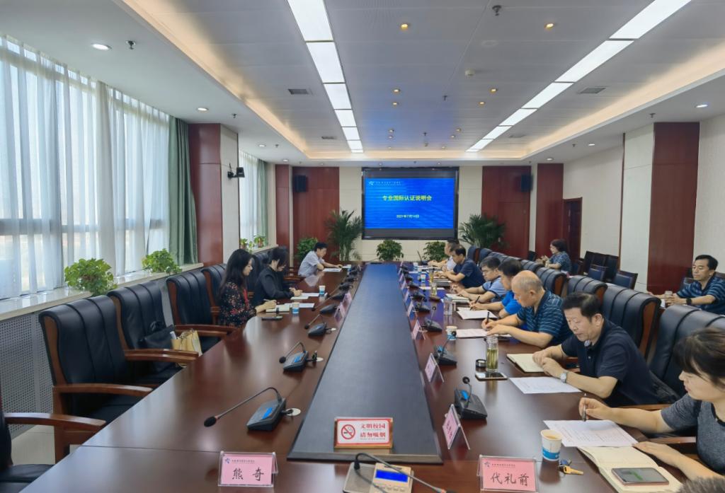 7月14日上午,学院专业国际认证说明会在鸭脖召开。英国国家学历学位评估认证中心中国首席代表李华杰、学院院长赵春平、副院长安学武、赵六杰、教务处处长滕勇、副处长张刚毅、发展规划处处长马军强、国际处处长赵景民及各二级学院的正副院长等参加了会议。