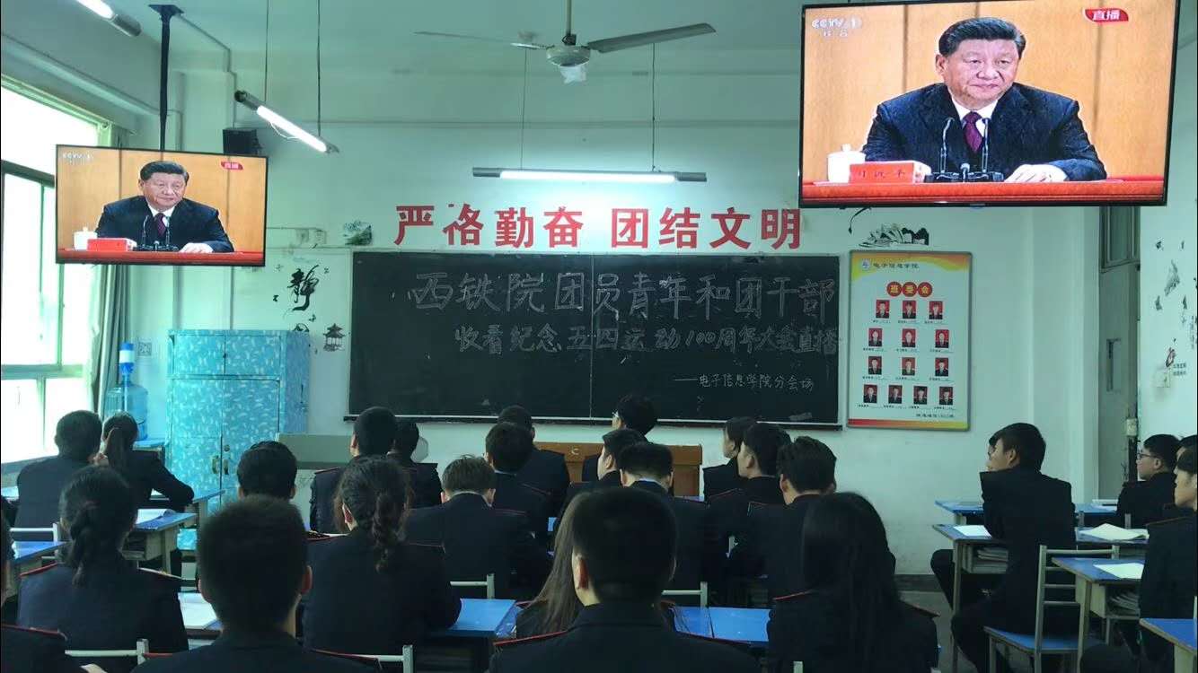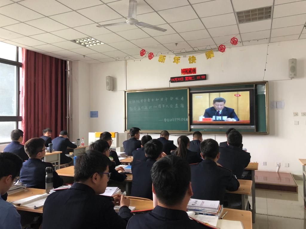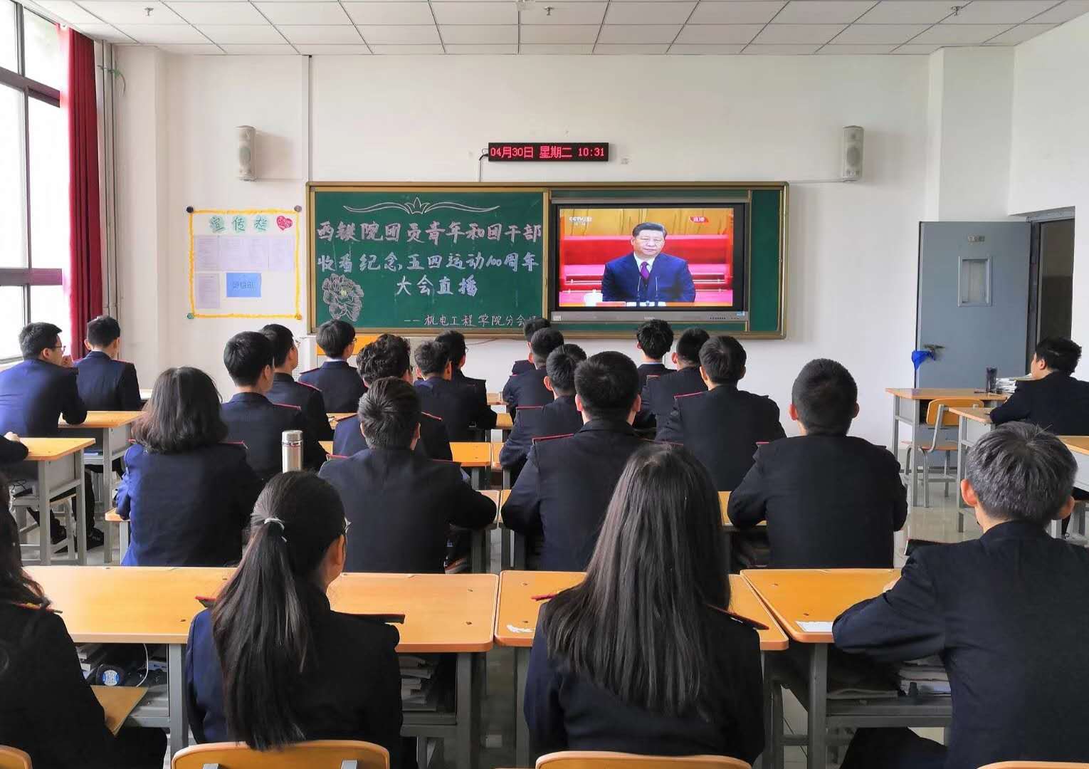 4月30日上午10:30分,学院团委组织600余名青年师生代表,分别在港务校区办公楼六楼第三会议室、临潼校区大礼堂、各二级学院相关教室(报告厅)收看纪念五四运动100周年大会。