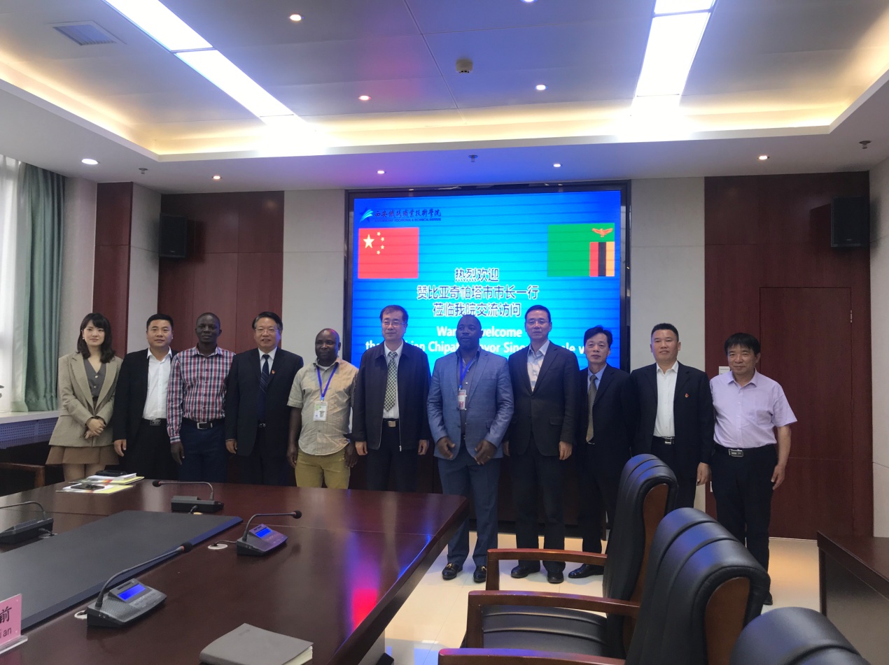 在参加丝博会期间,赞比亚奇帕塔市市长锡诺亚·威尔携城市规划局局长斯坦· 姆瓦卡亚亚、议员姆瓦库塔·耶尔于5月14日上午访问yabo鸭脖官网。