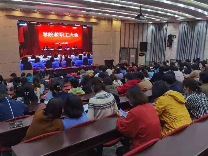 10月13日下午,学院召开新学期全体教职工大会。学院领导班子成员、港务校区科级以上干部在主会场就座,各校区设分会场。会议由学院党委副书记邓耀斌主持。