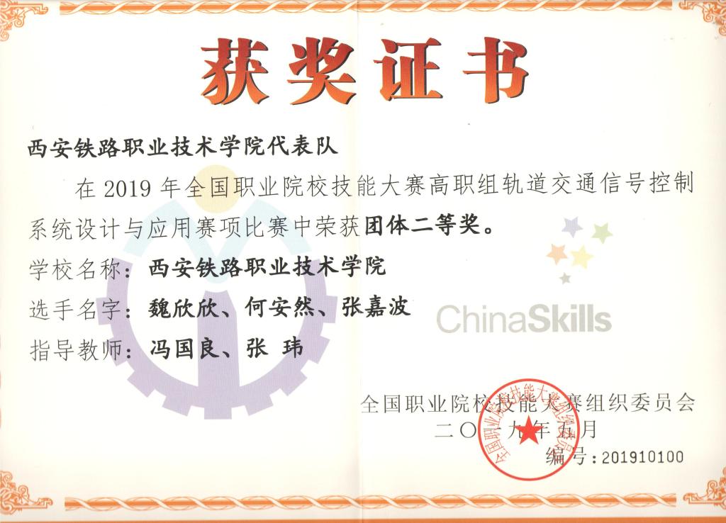 鸭脖在2019年全国职业院校技能大赛“轨道交通信号控制系统设计与应用”赛项荣获团体二等奖。