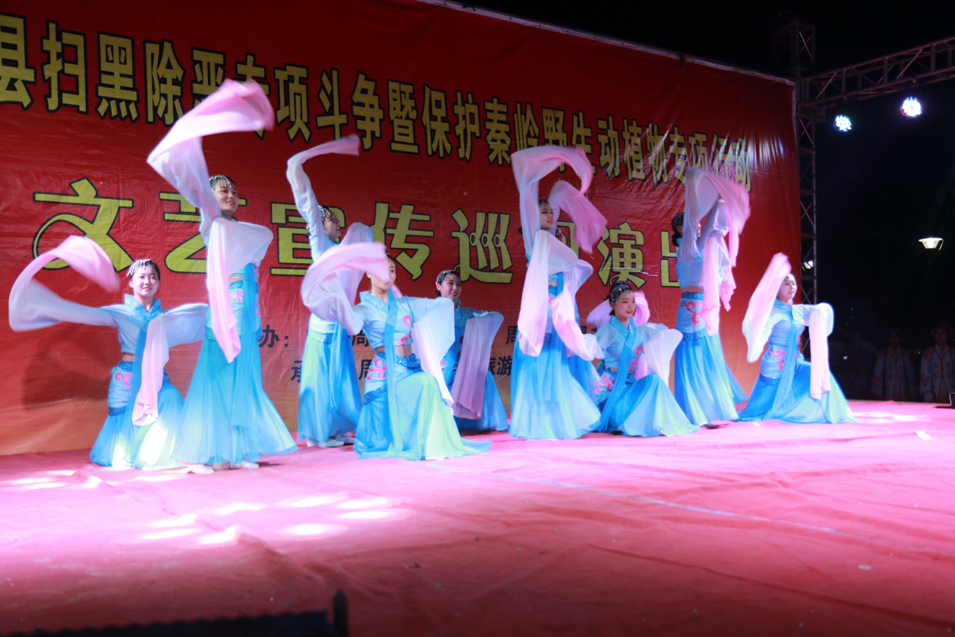文艺演出在热闹欢快的《最炫民族风》街舞中拉开帷幕。随后,主题鲜明的音乐快板《扫黑除恶得民心》、网络大热的方言歌曲《陕西人的歌》、省赛获奖的民族舞蹈《采薇》等12个节目获得了台下观众的阵阵掌声。演出过程中还穿插了“扫黑除恶”和“脱贫攻坚”知识有奖竞答,将现场气氛一次次推向高潮。通俗易懂的舞台语言和群众喜闻乐见的表演形式使“扫黑除恶”专项斗争深入人心,家喻户晓。同时,也为奋进在脱贫致富“后半程”征程中的六合村群众和鸭脖驻村工作队员送上了一场精彩的文化大餐,鼓舞着六合村群众在脱贫致富的康庄大道上继续大步向前。