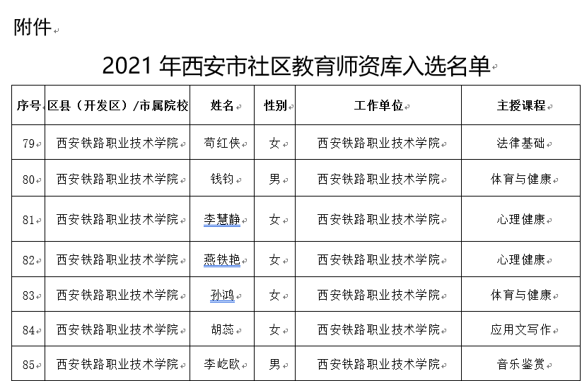 为加强我市社区教育师资队伍建设,实现优秀师资资源共享,进一步提高社区教育培训工作的质量和效益,上半年,西安市教育局在全市范围内开展了2021年西安市社区教育师资库遴选工作。学院高度重视这一工作,按照遴选条件,采取自愿报名、逐级审核,择优推荐的原则,上报苟红侠等十名教师参加遴选,经过市级专家评审,面向社会公示等环节,鸭脖推荐的苟红侠等七位教师,成功入选西安市社区教育师资库。
