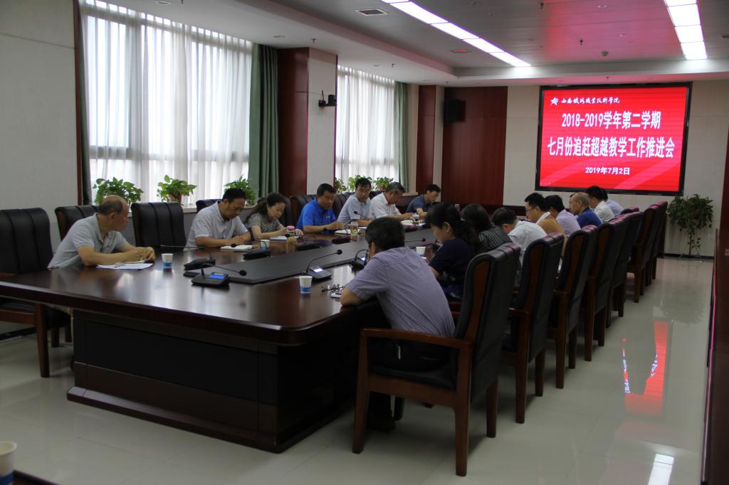 7月2日,学院副院长安学武主持召开7月份追赶超越教学工作推进会。教务处、教科研处、质量管理办公室、现代教育技术中心、教师发展中心、图书馆等职能处室及各二级院部负责人参加会议。