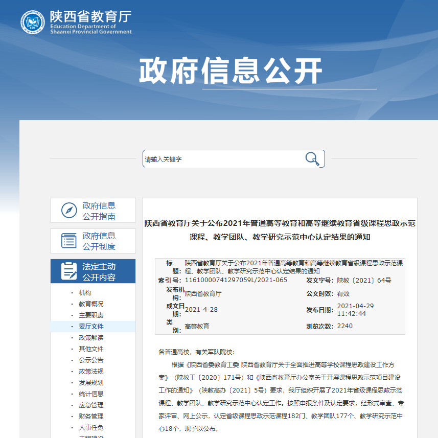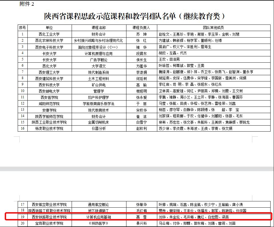 近日,鸭脖电子信息学院《计算机应用基础》课程获批2021年陕西省教育厅省级课程思政示范课。