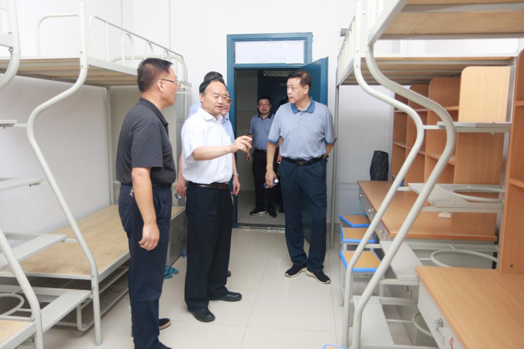 韩宝生一行在鸭脖港务校区各教学组团、运动场等地进行实地检查,并深入学生宿舍查看学生住宿设施。邓耀斌向韩宝生详细汇报了鸭脖落实《高等教育法》相关工作及学院在党的建设、教学科研、招生就业等方面的工作情况。