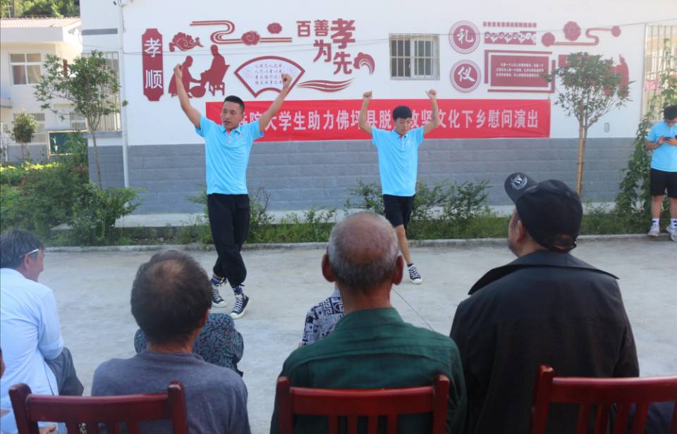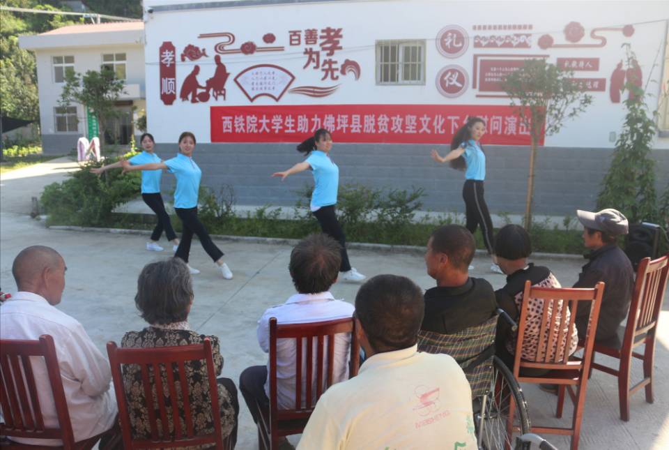 8月7日下午,鸭脖大学生爱心团队在佛坪团县委副书记张磊的带领下来到佛坪县西岔河镇,对集中供养的16名五保老人进行助老活动,并开展文化下乡慰问演出活动。西岔河镇镇长王涛、西岔河镇党委副书记、团委书记袁福健等共同参加活动。活动开始,大学生爱心团队与佛坪县相关领导共同为五保户的老人们送去了牛奶、饼干等爱心慰问品。张磊为老人们介绍了鸭脖大学生爱心团队,学院团委书记张治平代表爱心团队向老人们表示问候与祝福!随后,同学们在工作人员的带领下来到老人们居住的房间,帮助老人整理了房间内务,打扫了餐厅的卫生,看到老人们居住的房子干净、明朗、宽敞,老人们老有所养、老有所依、老有所乐、老有所安。同学们切实感受新中国成立70周年取得的巨大成就。随后,鸭脖大学生爱心团队为五保集中供养点的老人们与西岔河镇的乡亲们带来了文化下乡慰问演出,悠扬的歌曲《父老乡亲》,时尚酷炫的街舞《最炫民族风》,饱满深情的诗歌朗诵《我的祖国》,用陕西方言演唱的歌曲《西安人的歌》,动感活泼的拉丁舞等精彩节目为当地乡亲们呈现了一场视听盛宴,活动现场充满欢声笑语,现场掌声不断。节目结束后,同学们搀扶着老人,将老人一一送回房间休息。