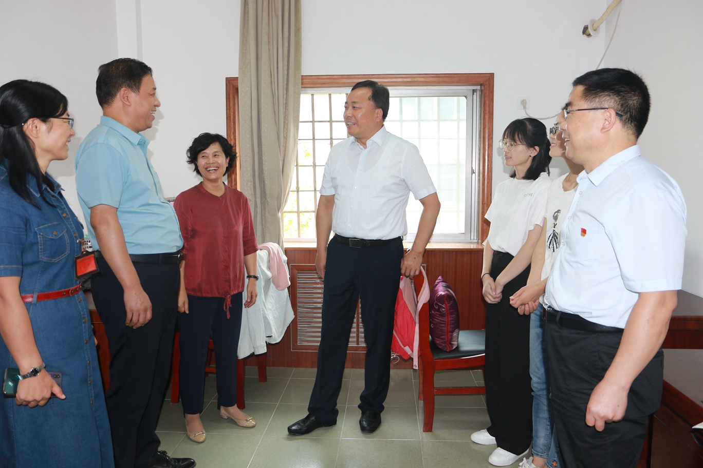 9月2日,开学第一天。学院党委书记施利民到学院自强、临潼校区检查开学工作。