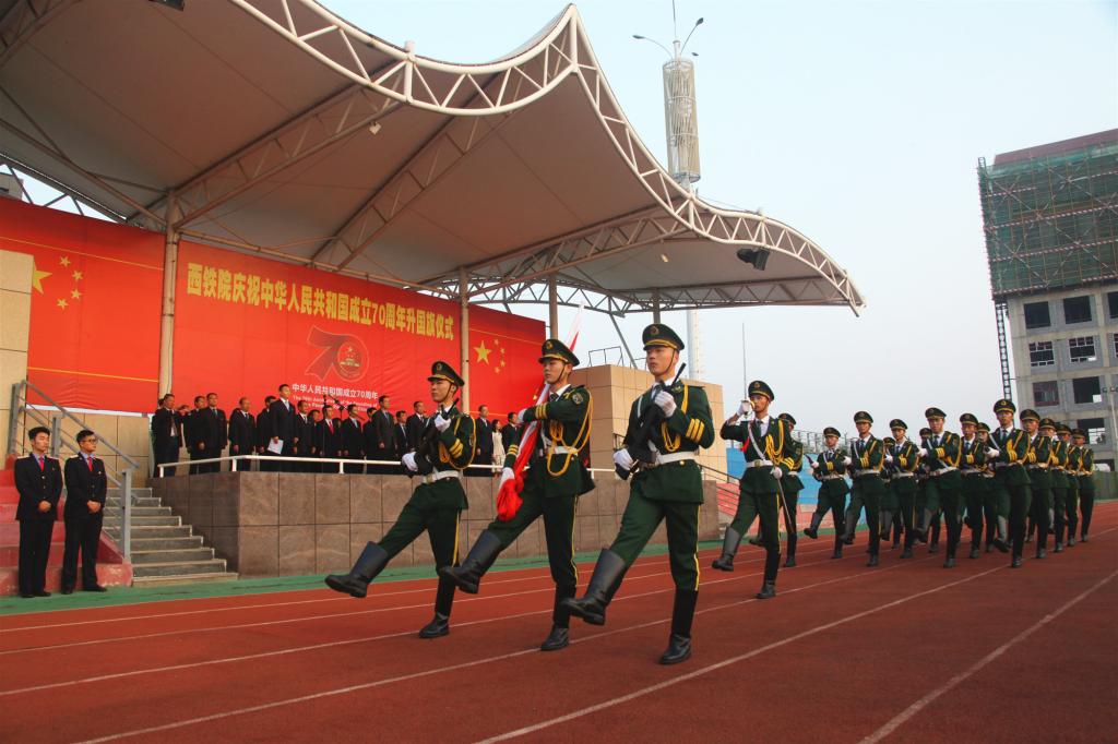 为庆祝新中国成立70周年,弘扬爱国主义精神,引导青年学生砥砺奋进、筑梦前行。9月30日上午7时,学院隆重举行升国旗仪式。党委书记施利民、院长田和平、党委副书记邓耀斌、副院长安学武、副院长赵六杰,学院各部门处级干部和各二级学院师生等7000余人参加。升旗仪式由学院团委书记张治平主持。