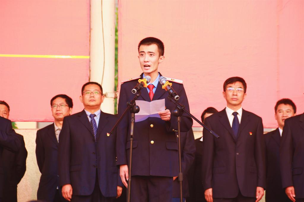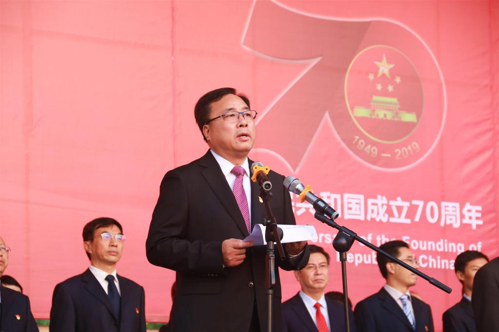 最后,学院党委书记施利民讲话,他回顾了伟大祖国70年的光辉历程。面向未来,他对全体同学提出了三点希望和要求:一要热爱祖国、树立远大理想。自觉坚定爱党护党跟党走的思想和行动自觉,胸怀忧国忧民之心、爱国爱民之情,不断奉献祖国、奉献人民,让爱国主义的伟大旗帜始终在心中高高飘扬。二要不忘初心、勇担时代责任。自觉把个人理想融入到祖国发展的大潮中,不忘初心、牢记使命,勇做时代弄潮儿,以奋斗点亮人生的方向,以担当书写中国梦的华丽篇章。三要砥砺奋进、实干报效祖国。自觉加强个人修养,钻研技术技能,提高综合素质,以青春之我、奋斗之我,为民族复兴铺路架桥,为祖国建设发展添砖加瓦。