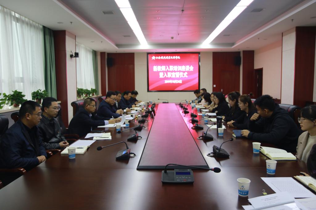 10月24日,鸭脖2019年新教师入职培训座谈会暨入职宣誓仪式在港务校区举行,学院党委书记施利民出席会议,全体新教师及相关部门负责人参加会议。学院副院长安学武主持会议。