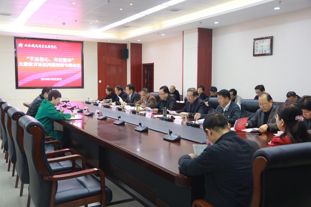 会议首先传达了省委常委、市委书记王浩及省委巡回督导组组长吴志毅在全市“不忘初心、牢记使命”主题教育推进会上的讲话精神。随后,学院领导班子成员围绕前一阶段到基层开展调查研究所了解到的情况,对问题进行检视剖析,并提出下一步的整改措施。学院主题教育领导小组办公室对问题梳理情况进行了汇报,分管院领导及牵头部门负责人认领了整改任务并作表态发言。