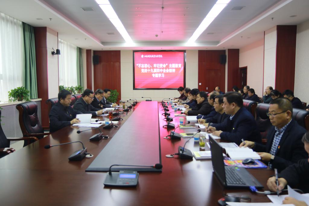 11月27日,学院按照市委“不忘初心、牢记使命”主题教育领导小组办公室要求,以党委中心组扩大学习的方式,对党的十九届四中全会精神进行传达学习。学院党委书记施利民主持会议并讲话。学院领导班子成员、副处级以上干部参加学习。