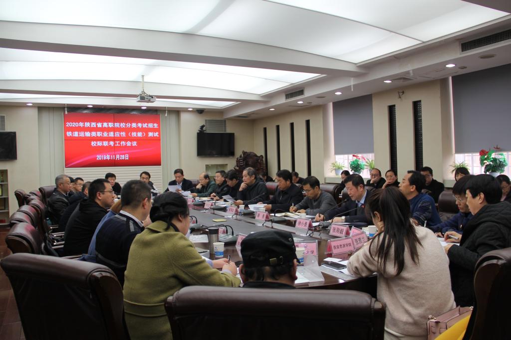 11月28日,学院在自强校区召开了2020年陕西省高职院校分类考试招生铁道运输类专业职业适应性(技能)测试机试工作会议。学院副院长安学武、教务处长滕勇、招生就业办主任夏良武、教务处副处长张刚毅及各二级学院负责人及相关专业带头人参加会议。参加会议的还有来自全省15所兄弟院校的领导和专业带头人。会议由交通运输学院院长徐小勇主持。