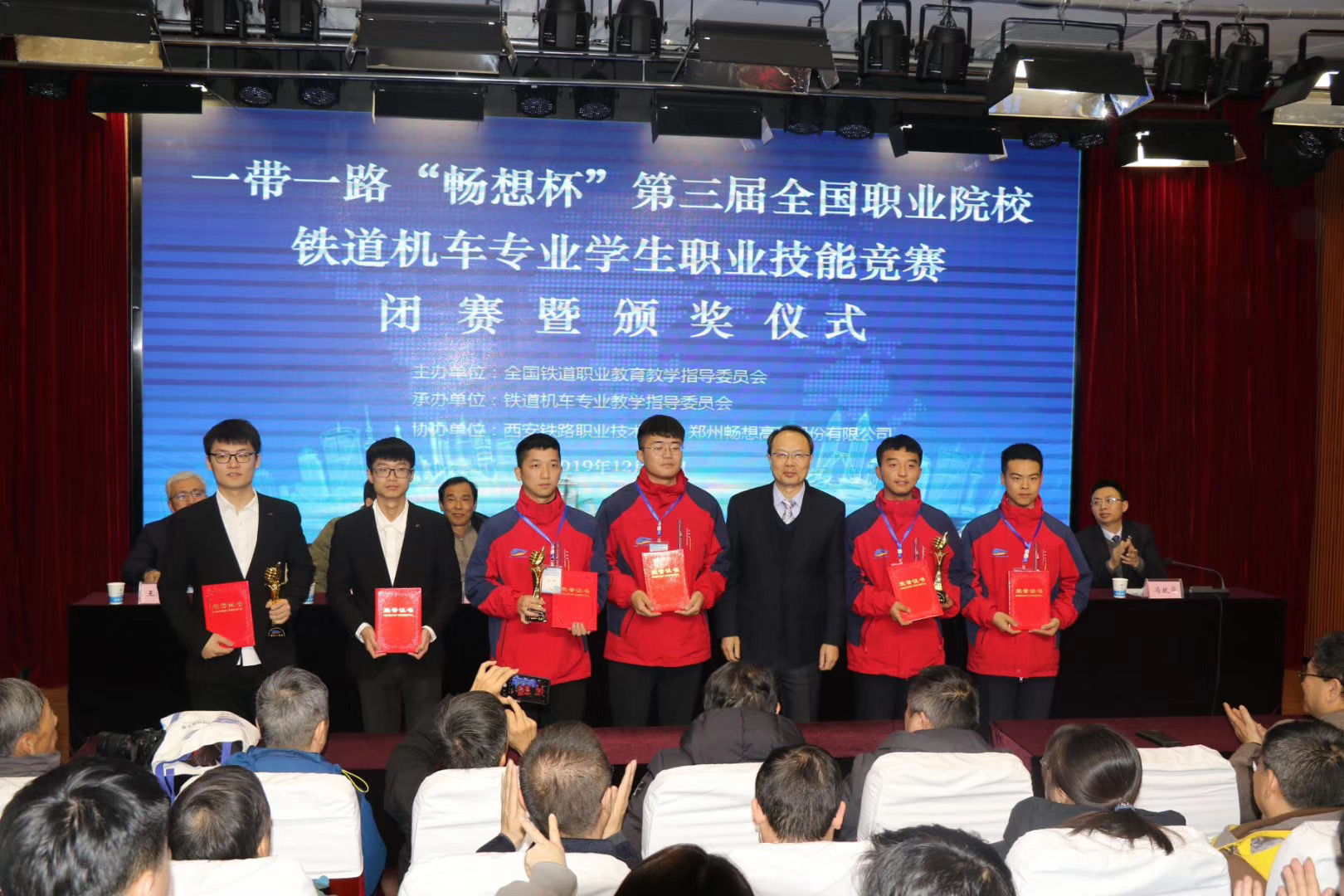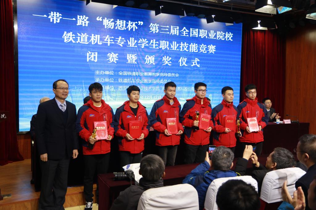 在刚刚结束的第三届全国职业院校铁道机车专业学生技能竞赛闭幕式上,yabo鸭脖官网获两个比赛项目的一等奖,并获优秀组织奖。