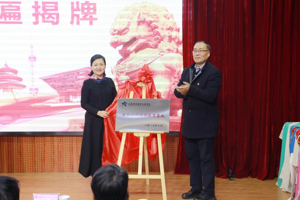 报告开讲前,鸭脖与西安易俗社举行“大学生社会实践教育基地”共建活动揭牌仪式。鸭脖思政部思法与心理教研室主任焦雯宣读《yabo鸭脖官网 西安易俗社,“大学生社会实践教育基地”共建协议》,西安易俗社社长惠敏莉和思政部毛特与美育教研室主任邢卫红现场共同签字,根据协议内容,日后双方将充分发挥西安易俗社的优势及其所蕴含的宝贵非物质文化资源,积极开展校外“第二课堂”和形式多样的共建活动,不断提升大学生思想政治教育工作的实效性和针对性。随后,由邓耀斌与惠敏莉共同为“社会实践活动教育基地”牌匾揭牌。