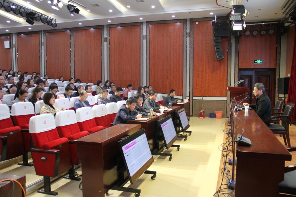 为做好教学成果奖培育工作,提升申报质量,11月18日,学院邀请了2018年度高职国家级教学成果一等奖获得者、陕西省职业技术教育学会秘书长杨建民教授作“教学成果奖申报与凝练”专题讲座。主会场设在港务校区办公楼一楼学术报告厅,自强校区、临潼校区同步收看直播。各院部院长(主任)、党总支书记、副院长、教学管理干部、专任教师及教学部门管理干部等300余人参加讲座。讲座由学院副院长安学武主持。