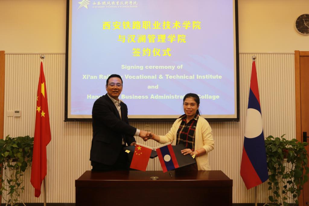 赵六杰在致辞中强调,学院近几年对外交流工作持续推进,在与俄罗斯、泰国的教育合作中摸索出了成功的经验。学院愿意在“构建人类命运共同体”的框架下,与老挝朋友分享中国经验、中国标准,尤其是铁路职业教育标准,愿意在来华留学、师资培训和帮助汉澜管理学院培育铁路专业等方面加强合作。