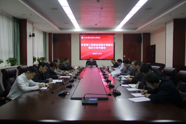 1月9日上午,学院召开专题党委会,研究审定市委第三巡察组巡察反馈意见整改方案及责任分工。会议由院党委书记施利民主持,党委委员、副书记邓耀斌,党委委员、副院长安学武,党委委员、副院长赵六杰及相关部门负责人参加会议。