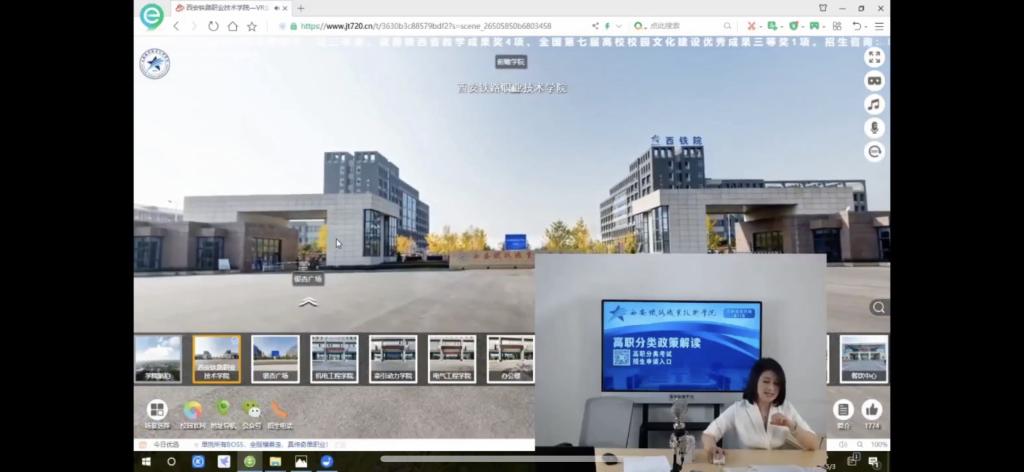 主播由招就办李洁老师担任,她借助学校VR平台带领考生“云看校”。直播活动在嘉宾宣讲、互动答疑、礼品抽奖、链接报名直通道等环节中轻松推进。