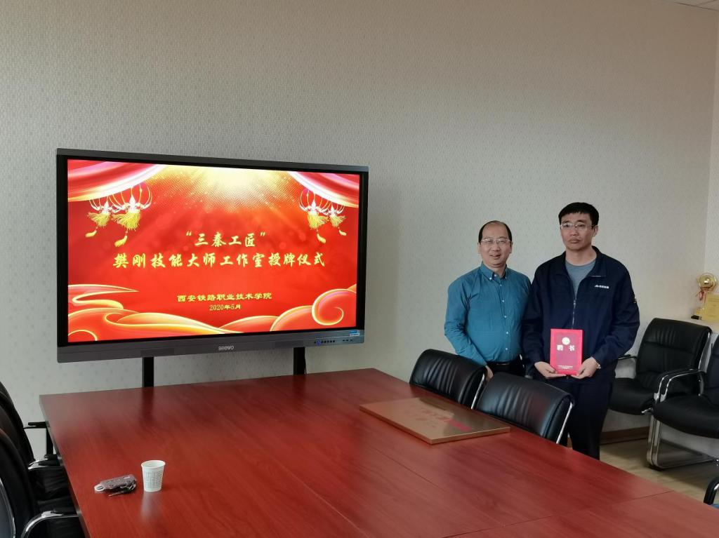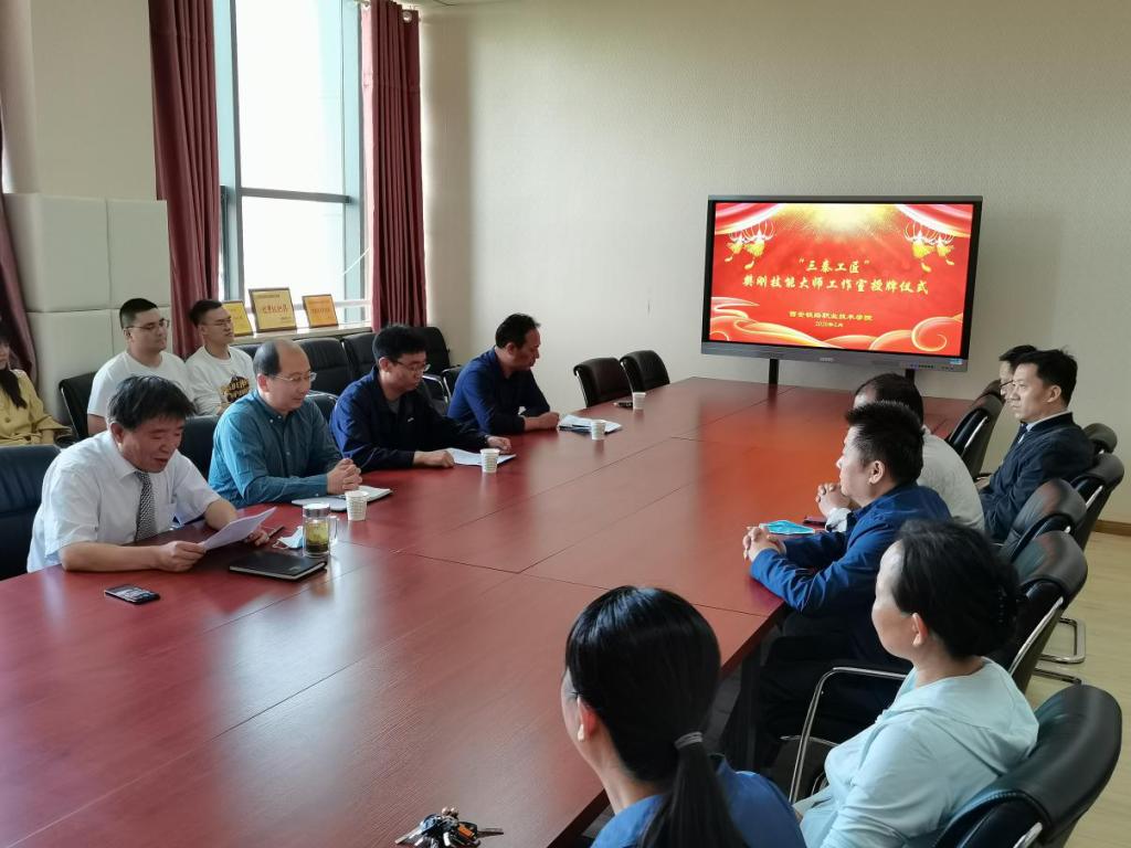 为大力弘扬工匠精神,推进双高建设任务,打造高素质高技能教师教学创新团队,助力铁道供电“省级一流专业”建设,5月15日上午,鸭脖“三秦工匠”樊刚技能大师工作室授牌仪式在电气工程学院举行。鸭脖校友中国神华能源股份有限公司神朔铁路分公司高级技师樊刚、学院副院长安学武、教师发展中心主任李贞伟、电气工程学院院长李栋、电气工程学院党总支书记任建国及部分教师参加了本次活动。