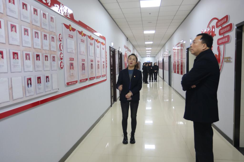 施利民首先实地调研了学院思政文化长廊,听取了马克思主义学院思政文化长廊讲解团队讲解的旗帜引领、精神传承、榜样力量、群英谱、对标自检、筑强堡垒、党员承诺、党员积分等板块的内容。随后,施利民与思政课教师及学生辅导员座谈,深入探讨学生思想政治教育工作。