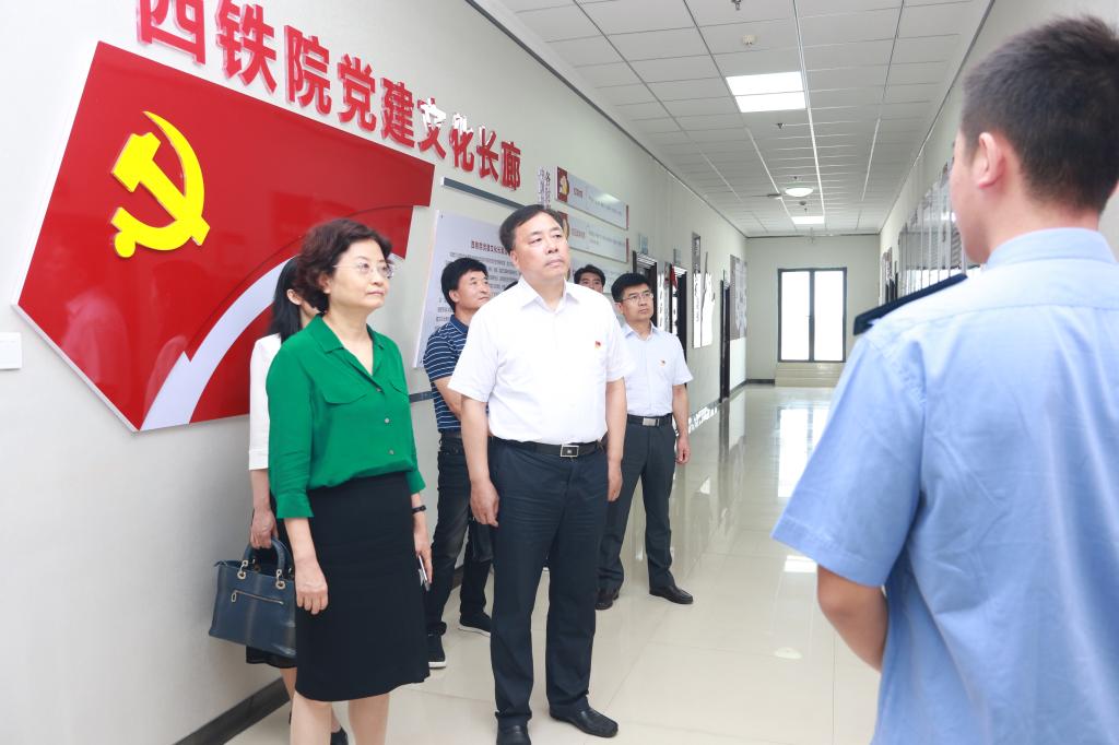 赵亚莉一行首先来到学院党建文化长廊,在学生讲解员带领下参观了光辉历程、新的篇章、廉政清风、党性体检、筑强堡垒等板块内容。在师生政治生活馆,赵亚莉一行实地调研院系基层党建工作,亲自体验“互联网+党建”学习平台,详细了解学院学生党员发展、党员积分制及党建特色工作情况。