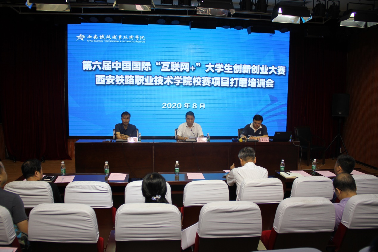 8月6日上午,学院在港务校区办公楼一楼报告厅举办了 “互联网+”大学生创新创业大赛项目打磨培训会,特邀教育部首批“万名创业导师”、“互联网+”大赛专家委员会委员、西安山水智慧企业管理咨询有限公司创始人董小泰担任主讲人。会议由教务处处长滕勇主持,副院长安学武出席会议并讲话,各院部院长(主任)、副院长、办公室主任、副主任、校赛42个入围项目的指导教师参加会议。