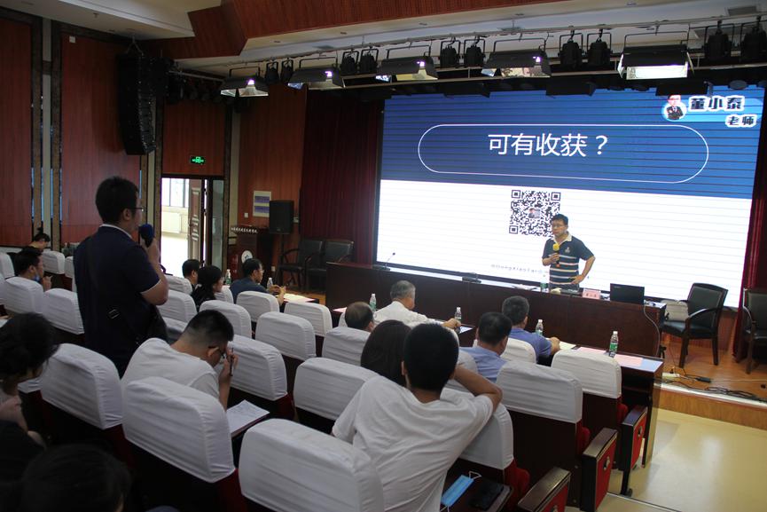 随后,董小泰解读了教育部最新下发的关于“互联网+”大赛规则的文件,阐述了省赛、国赛的评审规则和评审要求,分享了历届大赛情况、备战“互联网+”大赛的实用技巧,并结合自己“互联网+”大赛丰富的评审经验,对商业计划书撰写框架、路演PPT创新点与亮点提取以及路演注意事项等内容做了详细讲解。会后,董小泰针对部分指导教师的现场提问进行了耐心的解答,并与参会教师们进行了交流讨论。