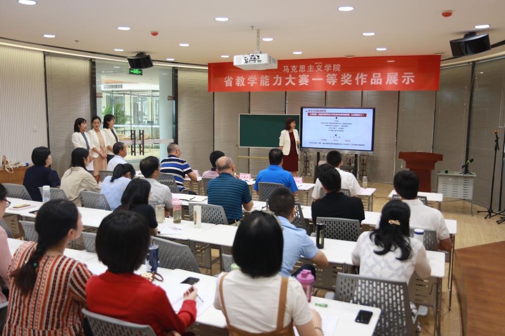 9月7日,马克思主义学院举办陕西省职业院校教师教学能力比赛一等奖获奖作品展示。学院院长赵春平、党委副书记邓耀斌,党委副书记、纪委书记邓轩、副院长安学武,相关部门负责人出席活动。焦雯、张倩、赵楠和单洁获奖团队展示获奖内容,马克思主义学院全体教师和国际交通学院部分教师到现场观摩学习。
