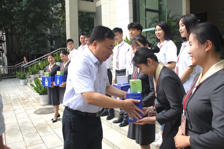 学院领导与19名志愿服务学生亲切交谈,悉心关怀学生的讲解服务工作和身体状态,实地聆听了学生的讲解,现场为学生鼓劲加油,并发送慰问品,真切嘱咐学生要在提升政治素养,强化综合能力历练的同时,积极展现yabo鸭脖官网学子昂扬向上、锐意进取的新时代青春风采和精神风貌。