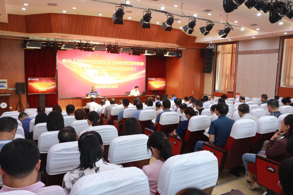 9月15日下午,学院党委理论学习中心组(扩大)召开2020年第6次集体学习,邀请原西安市委宣传部巡视员、市委讲师团团长、陕西省科学社会主义学会副秘书长庞江平教授作《习近平谈治国理政》第三卷专题辅导报告。学院领导班子成员、全体科级以上干部参加报告会。学院党委副书记邓耀斌主持报告会。