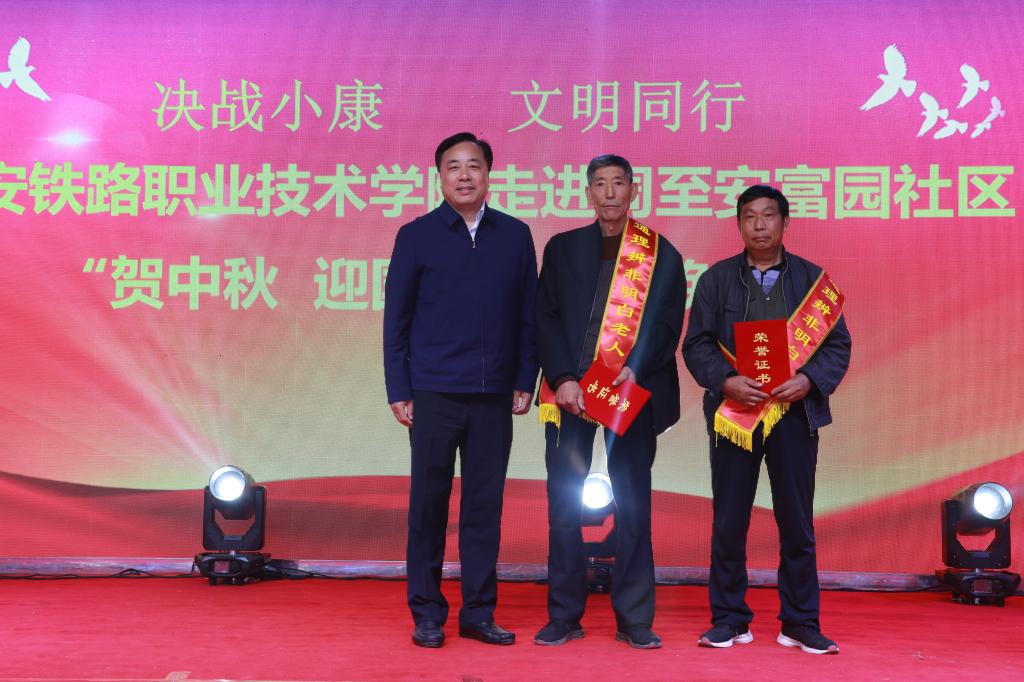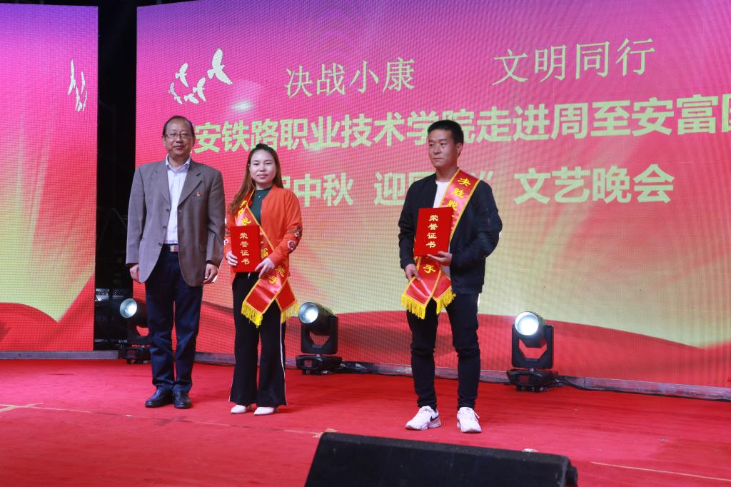 晚上七点,文艺演出正式开始。学院大学生艺术团师生和周至县艺术学校的学生共同为社区居民送上了配乐诗朗诵、歌伴舞、男女生独唱、秦腔联唱、二胡独奏等近20个精彩节目,高水准、接地气的演出赢得了观众的阵阵掌声,节目间穿插的脱贫攻坚知识有奖问答更是将现场气氛推向高潮。演出开始前,学院驻村工作队和六合村委会还对“明白老人”、“孝顺儿媳”和“致富能手”进行了表彰,学院和周至县委领导向获奖群众颁发了证书和纪念品。