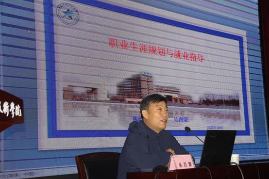就业指导中心副主任吴西蒙对“职业生涯规划与就业指导”内容进行了讲解和科学统计,对近年来就业形势进行了深入的分析,同时引导学生做好职业生涯规划,树立科学的就业观。