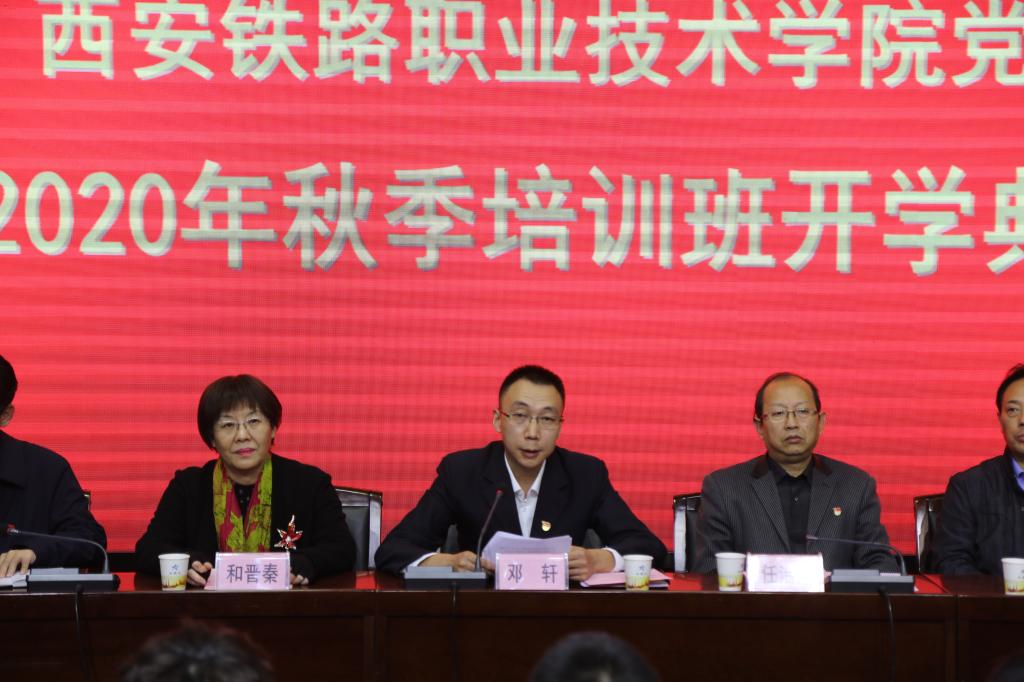 经过认真准备和精心安排,yabo鸭脖官网党校2020年秋季培训班于10月21日下午在港务校区举行了开学典礼,自强校区与临潼校区进行了同步直播。学院党委副书记兼纪委书记、监察专员邓轩,学院党校校务委员会成员任治军、和晋秦、李贞伟、仵崇智、宋永兴同志参加了开学典礼,开学典礼由任治军主持。