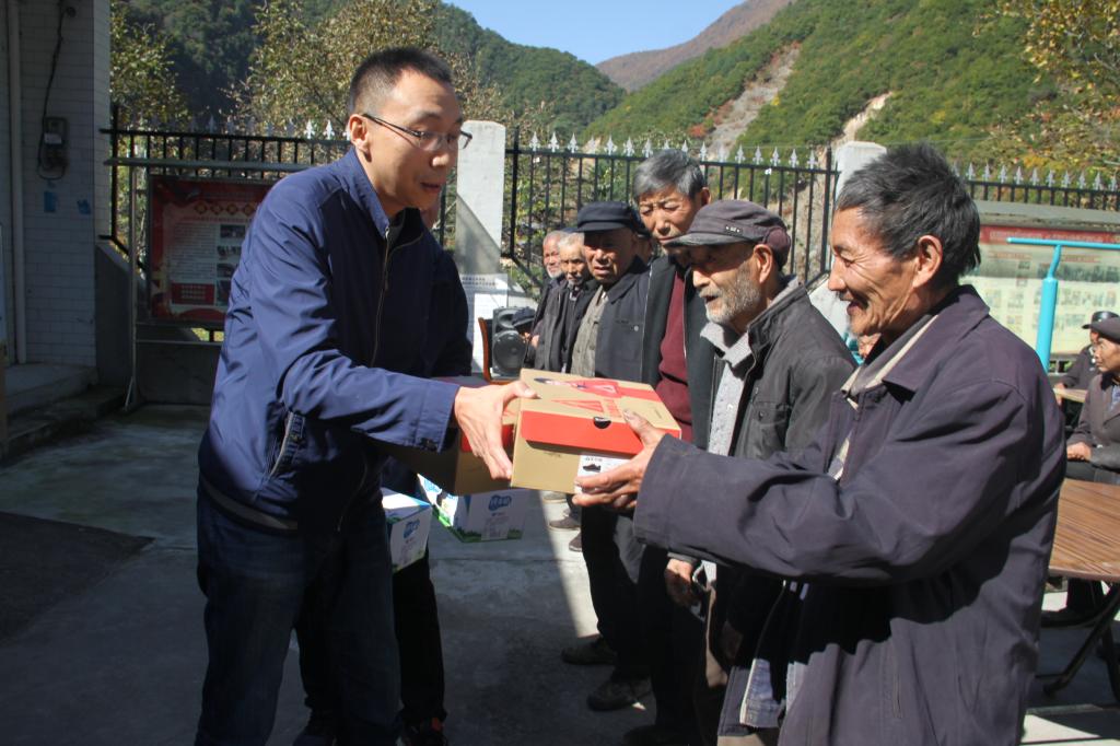 活动中,学院驻村工作队联合村委会邀请扶贫村老人欢聚一堂,架起炉灶台,摆起祝福宴,同吃“长寿面”,乐享“重阳节”,并送上“健步鞋”、牛奶等慰问品,共度传统节日。活动后,邓轩一行走村进户,为村民送去米面油,与村民亲切座谈交流,征集学院驻村扶贫工作的意见建议,并送上真挚祝福和节日慰问浓情。