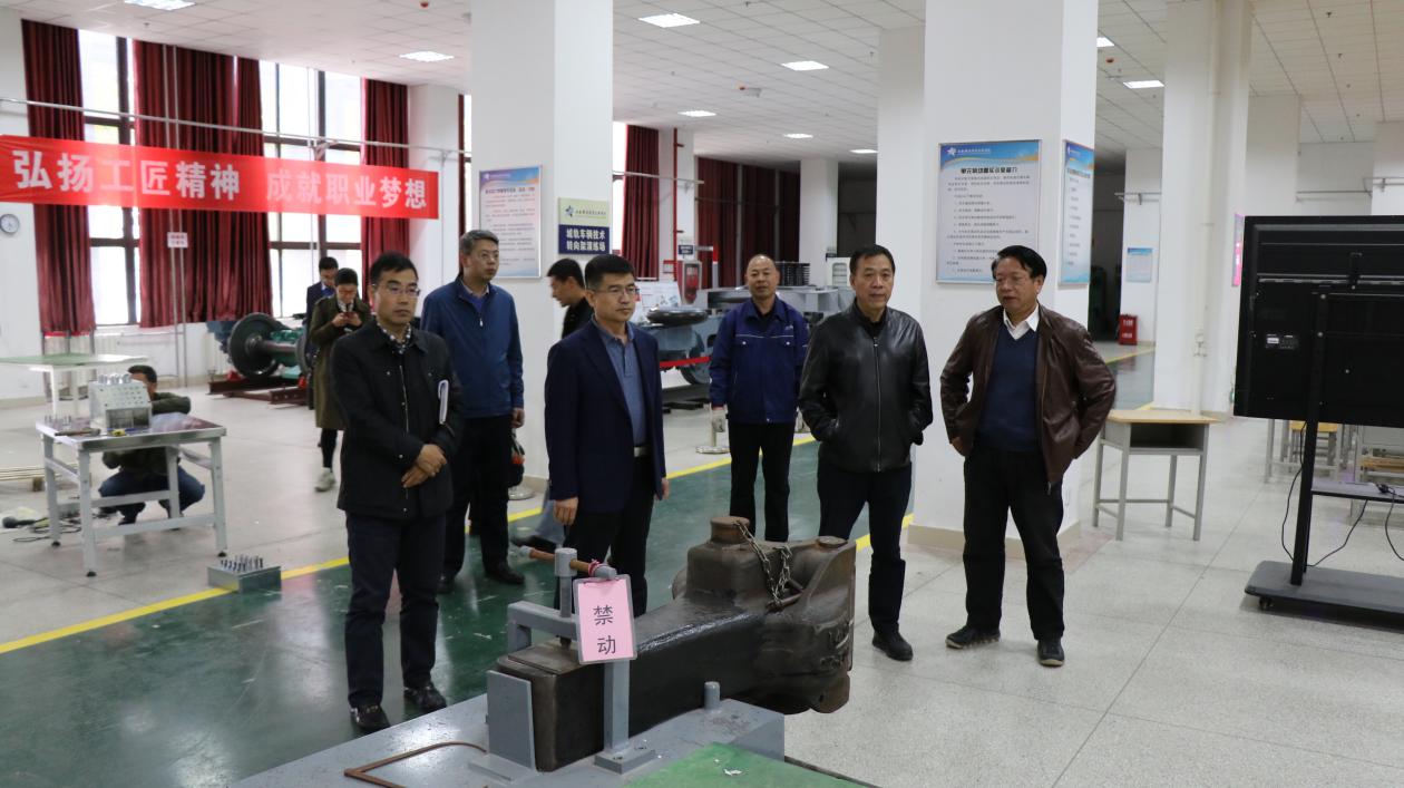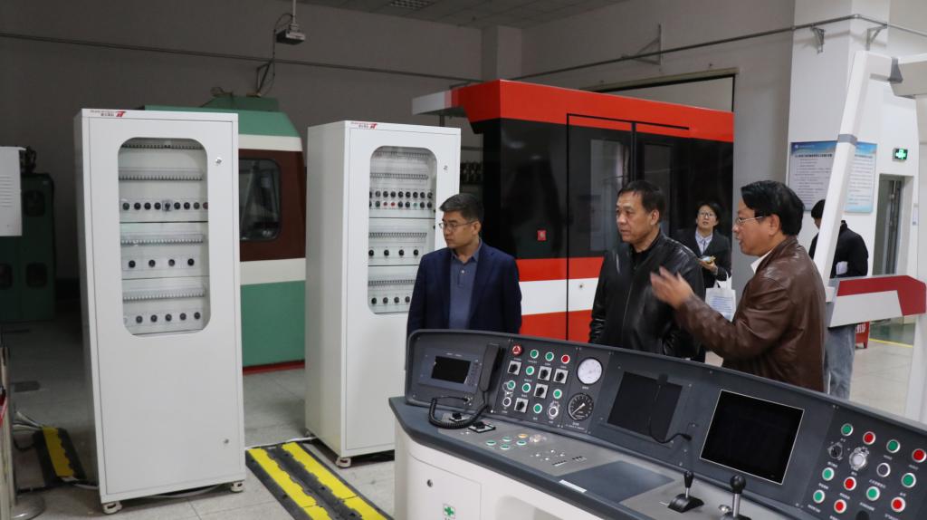刘胜辉校长一行分别参观了机车转向架演练场、行车安全装备演练场、CCB-Ⅱ型电空制动机实训室、磁悬浮列车实训室、机车一次乘务作业实训中心和动车组驾驶暨牵引传动实训中心等实验实训场地。
