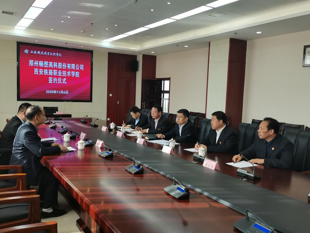 郑州畅想高科股份有限公司总经理张宪锋向学院领导表示衷心的感谢。他介绍畅想高科股份有限公司是一家专注轨道交通运用安全、教育实训领域研发、生产、销售和服务的高新技术企业,河南省重点上市后备企业,具有多年铁路运营产品开发的经验并参与制定多个铁路行业标准,充分了解铁路企业现场作业标准和技能技法,具有雄厚的技术实力和丰富的技能培训经验。张经理表示之前的两次合作也对他们企业的技术发展带来了很大促进,希望此次签订协议,双方能够发挥各自优势,深入合作,实现双赢。