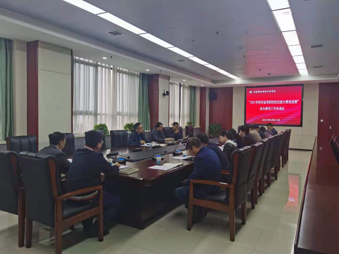 4月21日,学院副院长安学武主持召开“2021年陕西省高职院校技能大赛选拔赛”承办赛项工作协调会,安排部署鸭脖“英语口语”赛项承办工作。教务处、基础部及相关部门负责人参加会议。