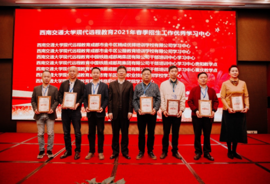 其次,大会对在2021年春季招生工作中有突出贡献的14个学习中心予以表彰,授予“西南交通大学现代远程教育2021年春季招生工作优秀学习中心”荣誉称号。继续教育学院副院长许晓华代表受表彰的优秀学习中心在大会上分享了工作经验。