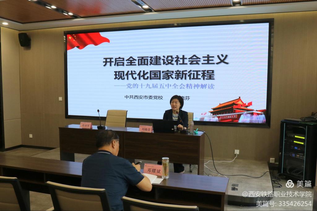 本次培训采用集中辅导、分组讨论和研讨交流等方式。西安市委党校党史党建教研部主任刘晓芬以《开启全面建设社会主义现代化国家新征程》为题,从全会的基本概况、全会召开的背景、新阶段与新目标、新理念与新部署、新变化与新格局等五个方面,对党的十九届五中全会精神进行了深入解读。