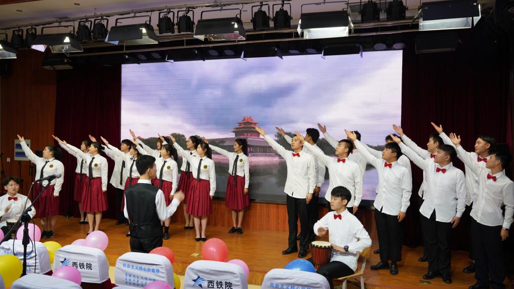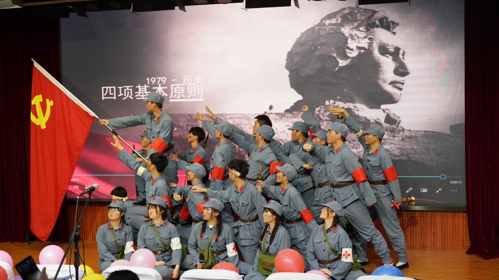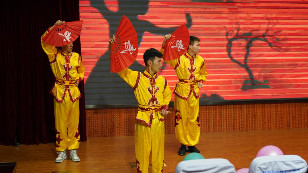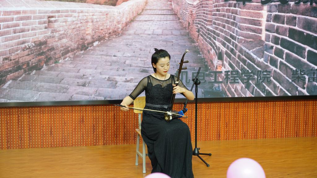 开幕式后,同学们用精彩的红色主线路文艺节目完美展示鸭脖师生的精神风貌。国旗护卫队的合唱《没有共产党就没有新中国》铿锵有力,气势磅礴;舞蹈《红旗颂》在激昂的音乐,优美的舞姿,真挚的感情,表达了同学们对党和祖国的热爱之情;柴蕾老师带来的二胡独奏《长城随想第二乐章——烽火操》以真挚深厚的爱国主义情怀,讴歌中华民族伟大精神和光辉灿烂的历史;舞蹈《灯火里的中国》深情大气、温暖人心、振奋精神;武术表演《中华武术》威风凛凛,展示了中华武术的博大精深;俄语小合唱《这里的黎明静悄悄》同学们用俄语演唱动听的旋律,再现经典,突显了鸭脖学生专业素养;《快板声声说党史》通过清脆的快板声、欢快有力的节奏、朗朗上口的旋律讲述百年辉煌党史,汲取奋进拼搏力量;合唱《我爱你中国》用美好的旋律,真挚的情感,展现的祖国的祝福与热爱;舞台情景剧《红色征途》通过真挚的眼神、动情的表演再现红军将士身披两万五千里风雪征尘,于枪林弹雨中以自己的血肉之躯铺就了胜利之路,给观众们带来精神上的震撼。歌伴舞《青春点燃梦想》,同学们通过演唱十四运会志愿服务主题曲,用青春旋律点燃梦想激情,展现鸭脖青年学子为十四运的顺利召开贡献青春志愿力量的决心。