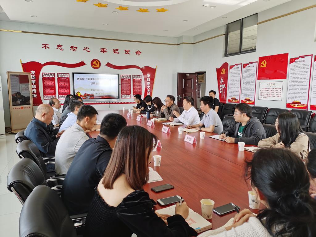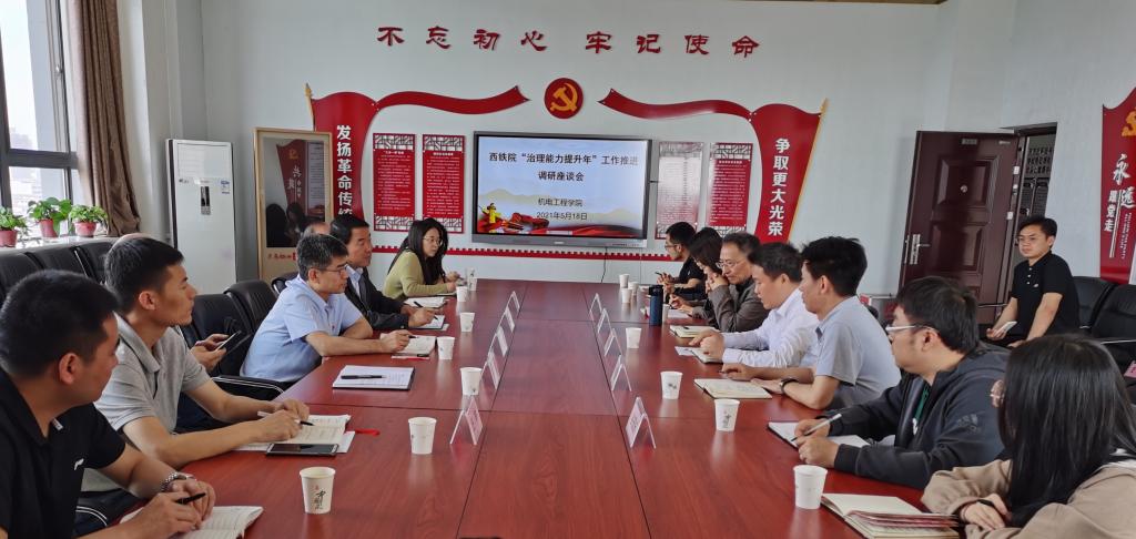 5月18日上午,学院院长赵春平深入机电工程学院组织开展党史学习教育和“治理能力提升年”工作推进调研座谈会。规划处处长马军强、组织部部长任治军、党政办副主任王树陪同调研。调研座谈会由学院副院长安学武主持。