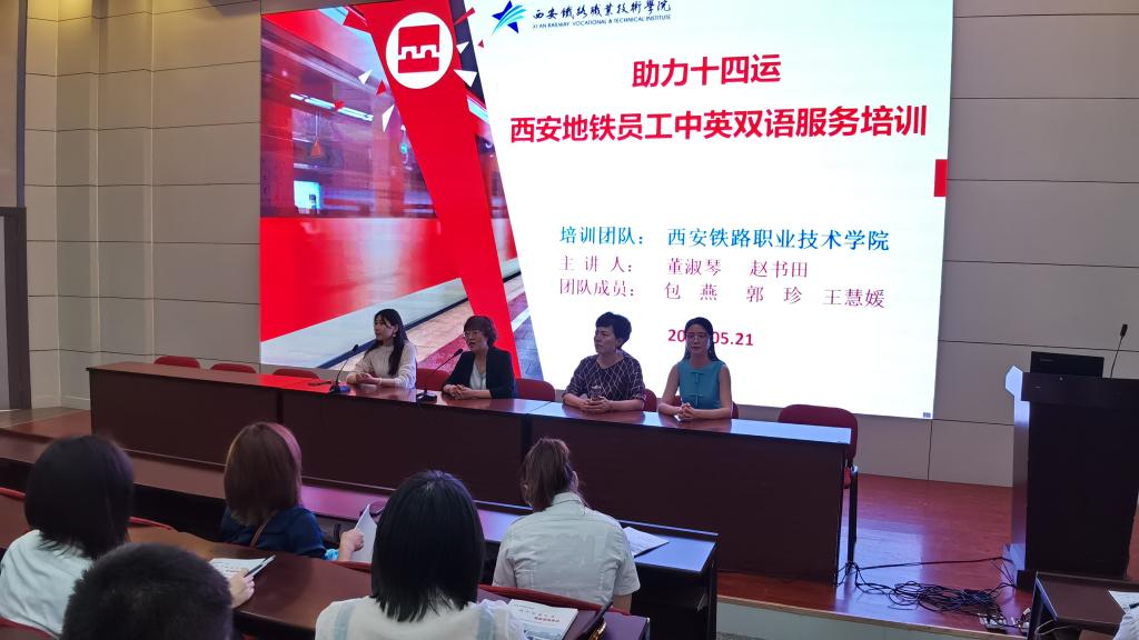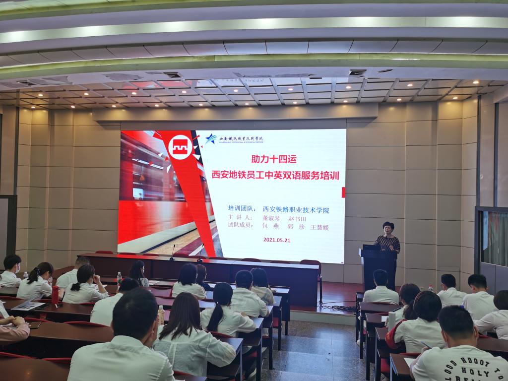 为进一步提高地铁工作人员服务水平,应西安地铁运营分公司要求,鸭脖为西安地铁员工进行了“助力十四运,西安地铁员工中英双语服务培训”,本次培训任务由鸭脖英语教研室承担。第一期参训人员来自包括西安城际轨道在内的八条地铁线路员工,共计163人,5月21日上午,培训准时启动。