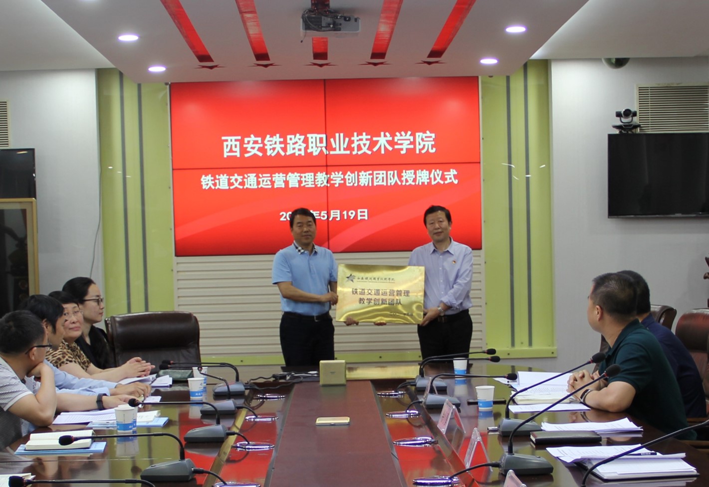 为深化“三教”改革,打造一批高水平教师教学创新团队,培育一支高素质名师队伍,5月19日下午,交通运输学院铁道交通运营管理教师教学创新团队暨赵岚名师工作室授牌仪式在自强校区第三会议室举行。学院副院长安学武、教科研处处长任建国、发展规划处综合科科长出席此次活动,交通运输学院院长徐小勇、副院长王公强、办公室主任薛青娜、副主任高琳及全体教师参加了授牌仪式。仪式由徐小勇主持。