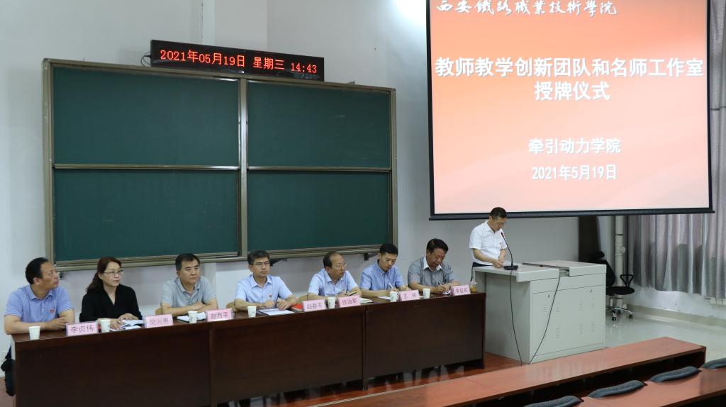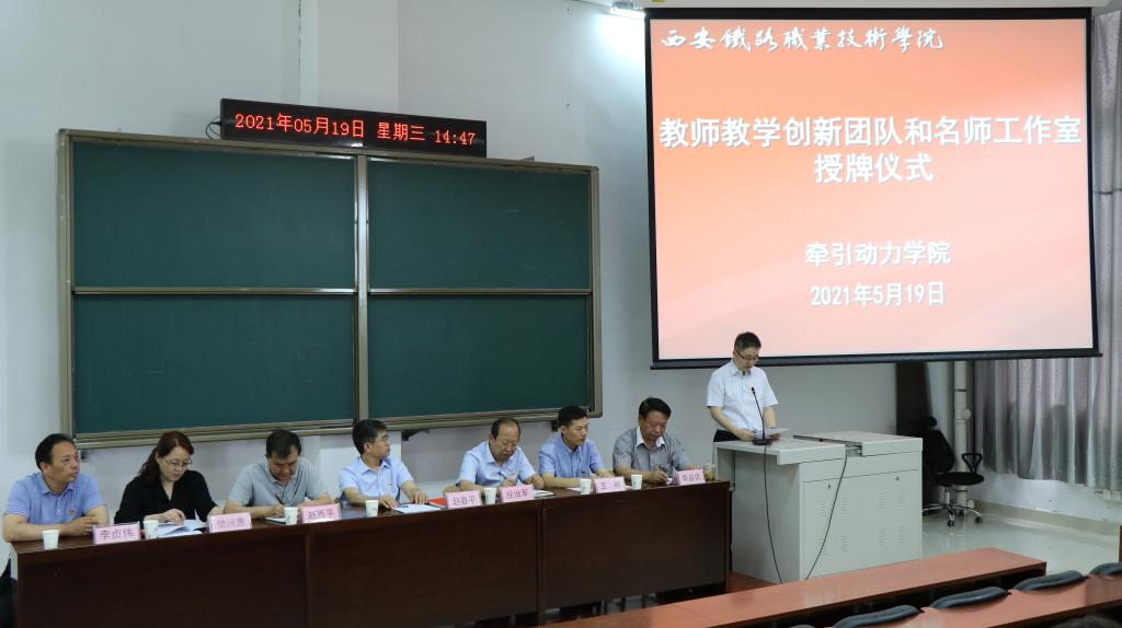 为进一步推进学院师资队伍建设,充分发挥名师的表率、示范和引领作用,造就一支德才兼备、业务精良、成效突出的师资队伍。5月19日下午,牵引动力学院在101阶梯教室举办了教师创新团队及名师工作室授牌仪式。学院院长赵春平、组织部部长任治军、人事处处长赵西平、党政办副主任王树、发展规划处副处长樊润惠、牵引动力学院院长李益民、党总支书记李贞伟、副院长林辉及牵引动力学院全体教职工参加了仪式。会议由李益民主持。